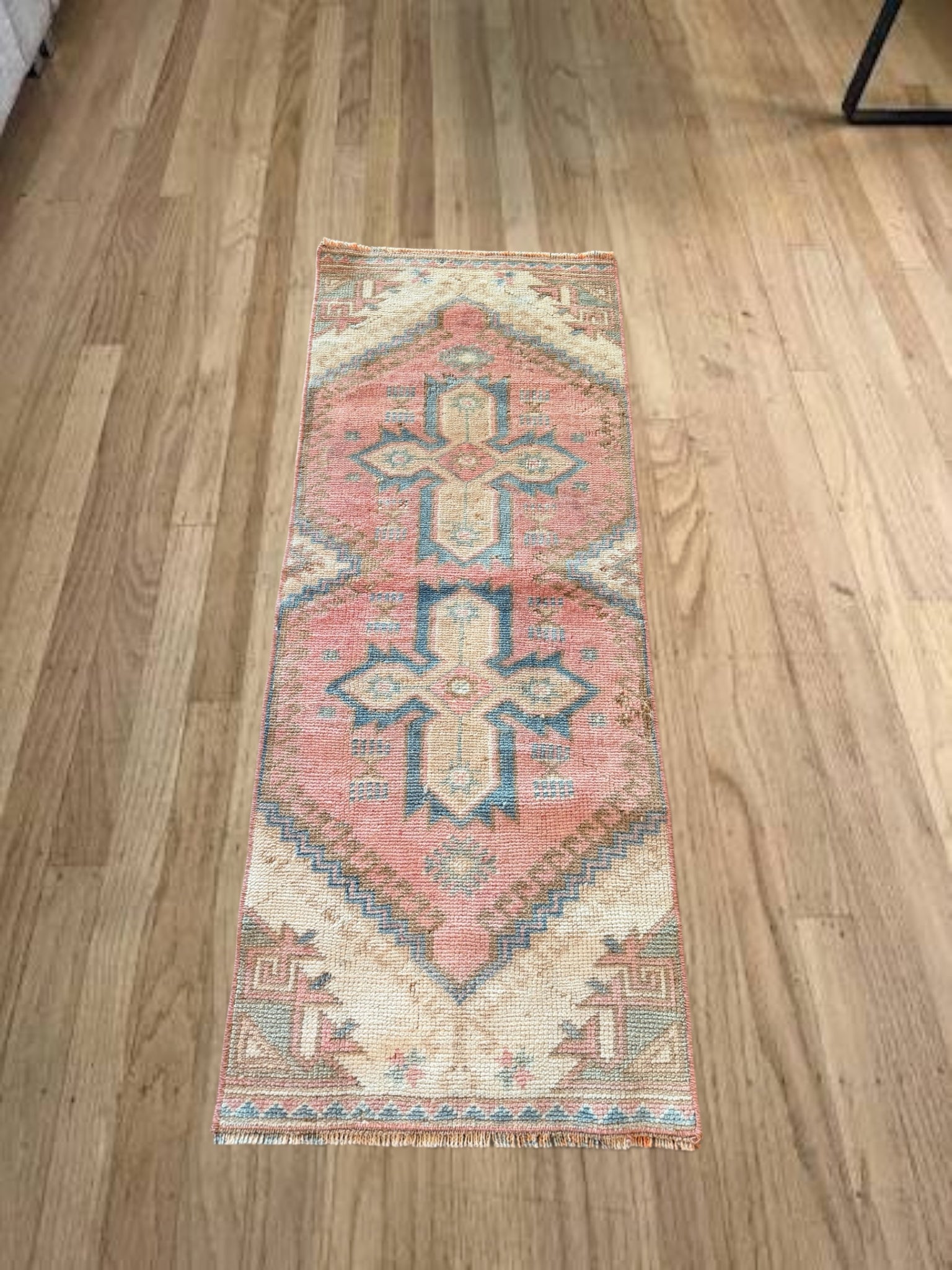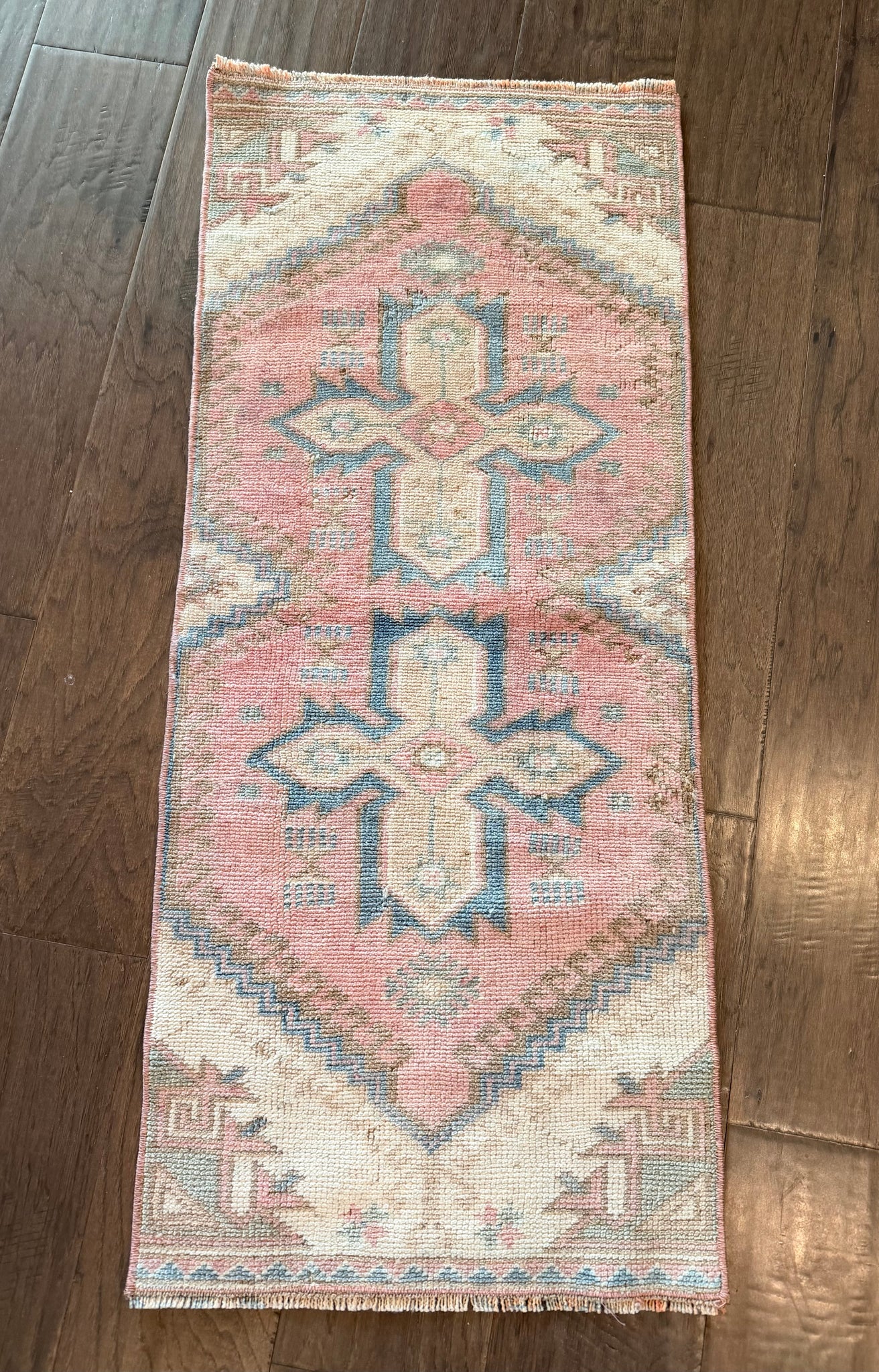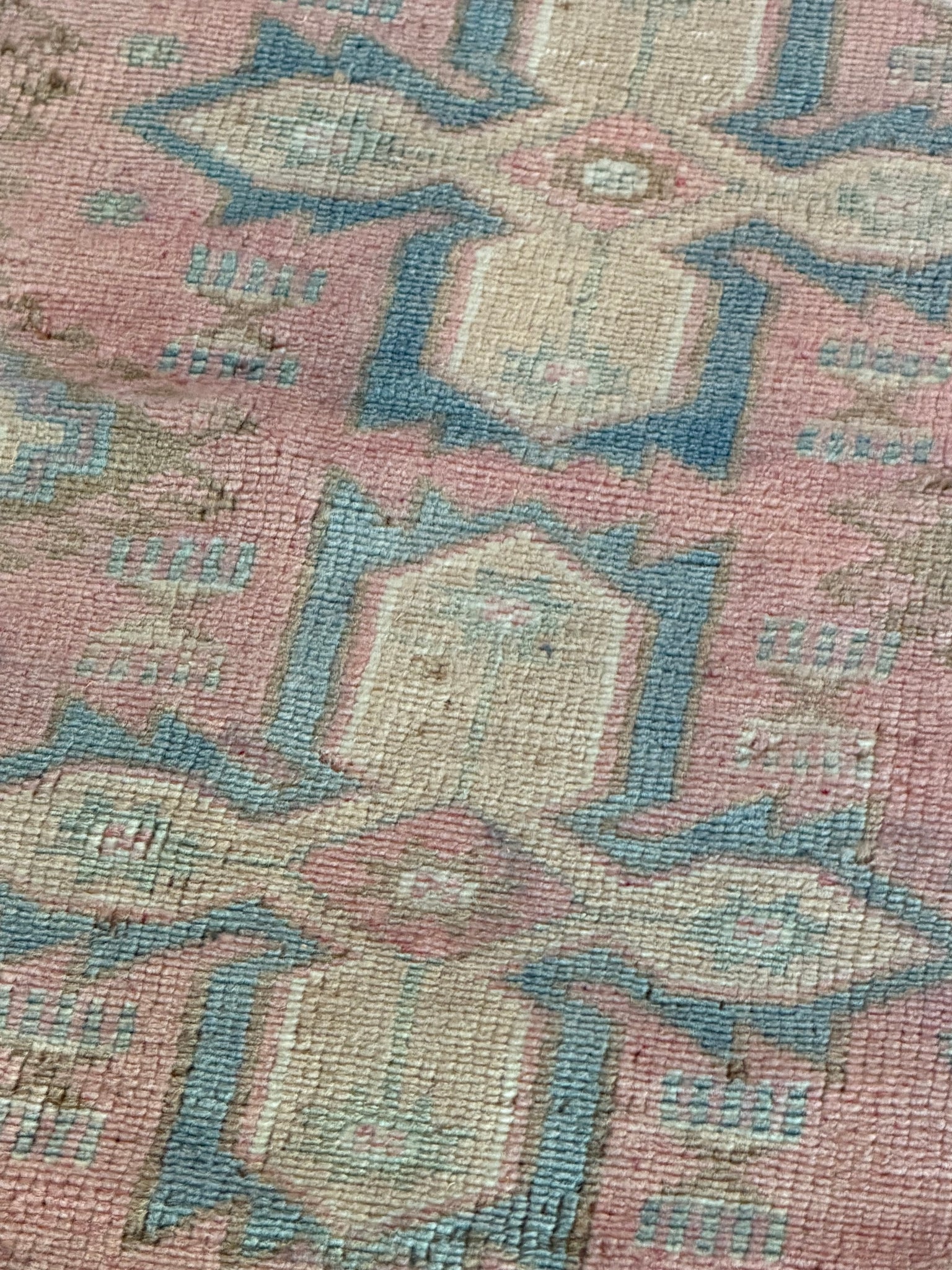 100% wool, vegetable dyed. This is a vintage item that may have some stains, wear, worn spots, repairs, holes, fading or other naturally occurring damage. We only offer items we would be happy to have in our own homes but want you to be aware that you are not purchasing brand new condition items!