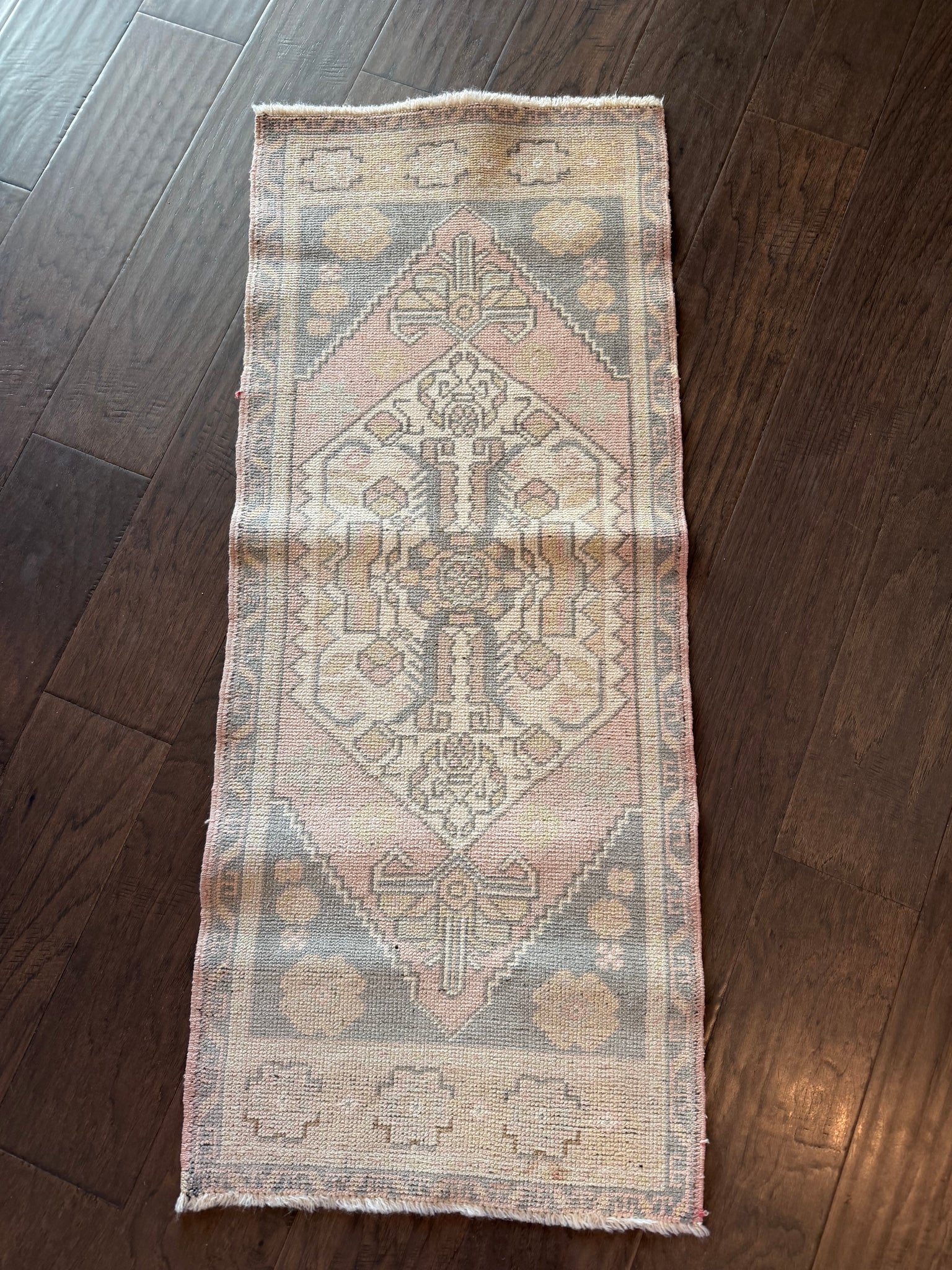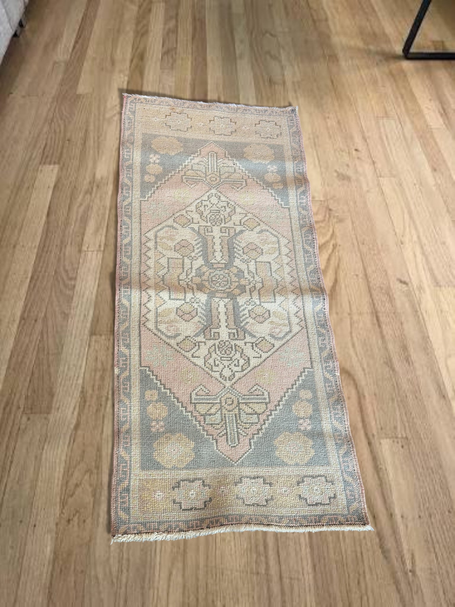 100% wool, vegetable dyed. This is a vintage item that may have some stains, wear, worn spots, repairs, holes, fading or other naturally occurring damage. We only offer items we would be happy to have in our own homes but want you to be aware that you are not purchasing brand new condition items!